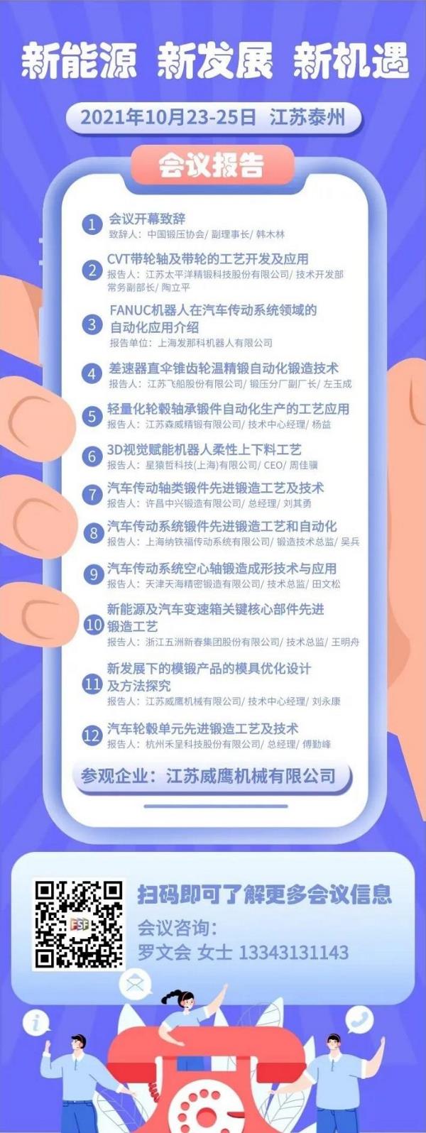 2021年10月23-25日,江苏泰州,共话锻造零部件“新能源 新发展 新机遇”。