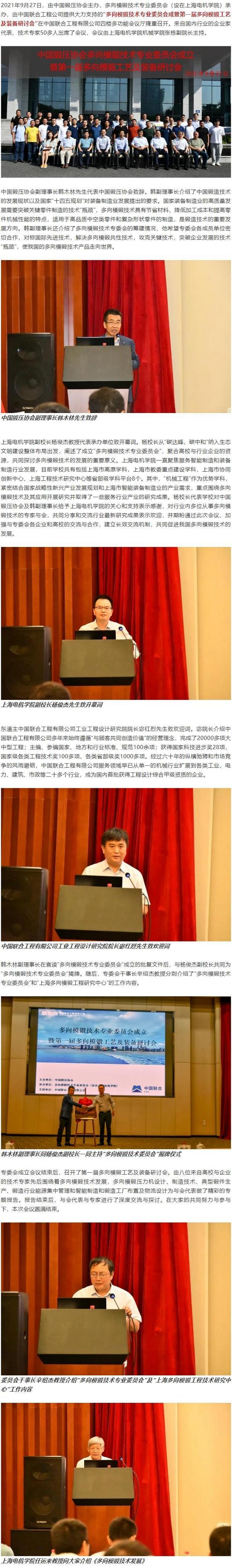 中国锻压协会多向模锻技术专业委员会成立暨第一届多向模锻工艺及装备研讨会于杭州圆满召开