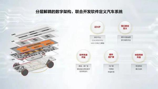 iDVP生态,构建开放共赢的智能汽车数字底座 在智能汽车数字架构中,华为提供智能汽车数字平台的基础要素iDVP,包括计算与通信架构CCA、车载操作系统、多域协同软件框架HAS Core和完善的工具链,构建硬件生态和软件生态,与伙伴们联合定义硬件接口和软件接口,联合开发原子化服务,实现软硬件分层解耦,帮助车企快速开发跨厂家、跨设备的应用,为用户带来持续进化的体验。