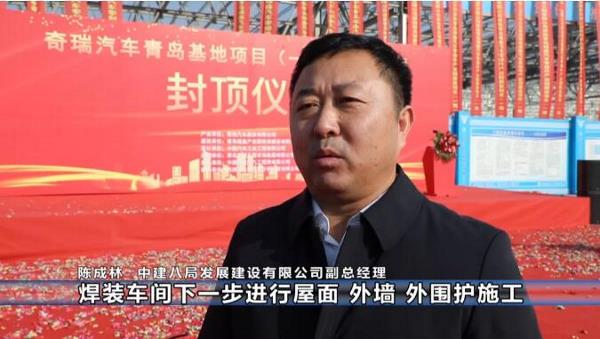 作为省市两级重点建设项目,奇瑞汽车青岛基地项目目前正在全速推进施工建设进度,12月21日,奇瑞汽车青岛基地乘用车项目焊装车间实现主体结构封顶,达产后预计可实现年产值约380亿元。