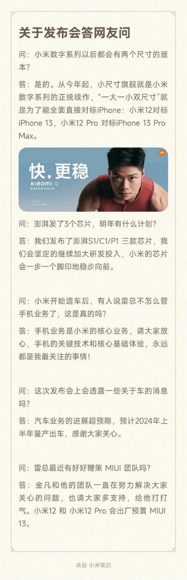 12月24日,在距离小米12发布仅剩4天时间之际,雷军在微博上发布了一则《关于发布会答网友问》。其中关于汽车业务方面,雷军再次表示,小米汽车业务的进展超预期,预计2024年上半年量产出车。![]() 事实上,早在今年十月份小米集团投资日上,雷军就已经表示,小米汽车预计将会在2024年上半年量产,小米造车及团队各项工作的进展都远超预期。 同时雷军会上表示,现在电动车已经从机械产业转向信息产业,同行都在做,小米不做汽车就会被淘汰,小米目前已经有智能手机、智能家居、智能办公等全智能生态,与汽车进行整合,将会有极强的扩张性。 ![]() 关于小米汽车业务最新进展,上个月底,北京经济技术开发区管委会与小米科技签约仪式举行,正式宣告小米汽车落户北京经开区。据悉,小米汽车项目将建设小米汽车总部基地和销售总部、研发总部,将分两期建设年产量30万辆的整车工厂,其中一期和二期产能分别为15万辆,预计2024年首车将下线并实现量产。 来源:盖世汽车 |