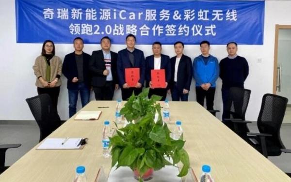 2021年12月2日,彩虹无线(北京)新技术有限公司(以下简称“彩虹无线”)与奇瑞新能源营销服务中心(以下简称“奇瑞新能源”)在安徽芜湖签署战略合作协议。本次的签约,标志着双方将在新能源汽车产品服务升级、用户体验提升等方面进行数字化应用,建立全方面的战略合作关系,开展全方位多层次的交流与合作,共同探索新能源汽车全新的商业模式和价值网络。