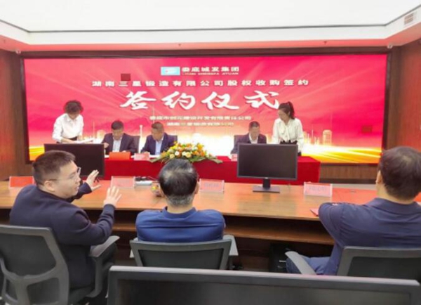 10月17日上午,创元公司举行湖南三星锻造有限公司股权收购签约仪式,正式收购三星锻造公司100%股权。城发集团党委书记、董事长杨柏林,党委委员、副总经理周汉明出席了仪式。