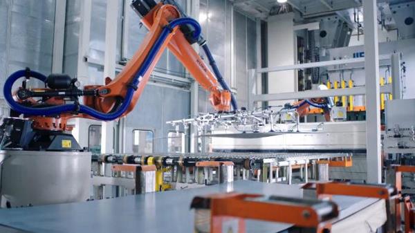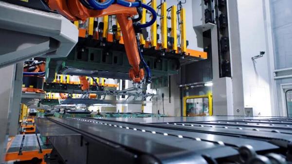 板料精准放入模具,不仅能减少物料损耗还能提高冲压精度。徐工汽车全自动冲压生产线采用德国P+F(倍加福)光学自动对中台,通过2组高清光学摄像头获取板材位置视频图像,由系统内置算法精确计算板材位置,给机器人发送指令将板材精确置入模具内。 解密三:如何提高生产效率?