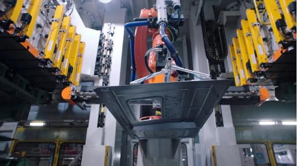 全自动冲压生产线不仅实现每分钟8.5次的超高生产速度,更将孔误差控制在0.2mm以内,从而保证尺寸精准及表面质量。 来源:徐工重卡 |