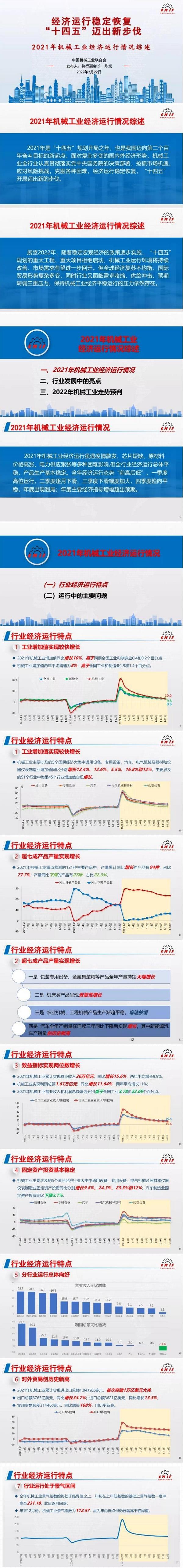 2022年2月22日,中国机械工业联合会2021全年机械工业经济运行形势信息发布会在京召开。中国机械工业联合会执行副会长陈斌发布2021全年机械工业经济运行形势信息,现将信息发布稿PPT刊登如下,供大家学习参考。