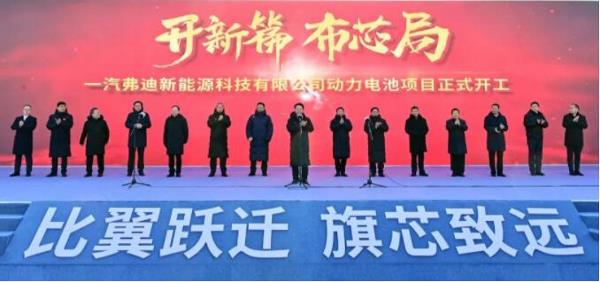 2月26日,一汽弗迪新能源科技有限公司动力电池项目在长春正式开工。吉林省省委书记景俊海出席开工仪式并宣布项目开工,省委副书记、省长韩俊致辞。