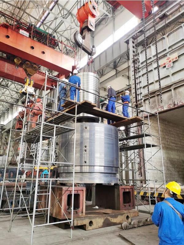 “这么大的挤压筒热装我还是第一次参加。热装前就要规划好产品吊装、加热保温细节,在装配的时候要选择理想的装配角度、做好安全生产防护方案,以满足热装的各种需要。”全程参与挤压筒热装的重机厂技术员谯波很是感慨,“大型装备装配也经历了不少,想要成功,就要有‘独门秘籍’,有探索“无人区”的勇气,跟在别人后面不可能获得突破性成果。”