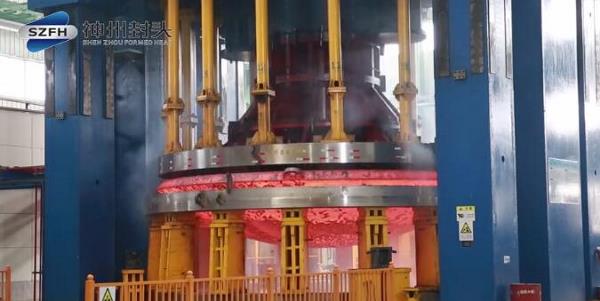 2022年3月26日上午8:30分,由河南神州精工制造股份有限公司(以下简称神州封头)承制的中国石化(仪征)PTA结晶器用EHA6918X208mm封头,单重108T、材质16Mn锻,整体冲压成功,宣告着特大、特厚封头产品在整体冲压制作上又迈出了里程碑的一步。 神州封头在该项目成功制作的过程,最大的亮点是模具的设计创新、脱胎(封头整体冲压过后,模具和封头的分离方式)方式的演变。首先,模具的设计围绕“节约、高效、创新”开展“一模多用”的研制,打破了传统铸造模具制造时间长、材料消耗大的现状,通过技术、工艺多次演练,以改造原有模具,加铸模具壳的方式进行制作,新的方式,较传统铸造模具单重200吨的材料用量,降低了50%,大大降低了制造成本(模具费用一项节约成本100万元)的投入和模具铸造的时间;其次,对于此次项目整体冲压后的封头,采取了下脱胎的分离方式,相对之前上脱胎的分离方式,在脱胎时间上由3—5分钟的多次脱胎,提升到1分钟之内的一次性脱胎,在提升效率的基础上,大大提高了封头成型过后的环节把控,为封头后续工序的制作,提供了可靠的先决条件;最后,对于大直径、特大、特厚封头产品的整体冲压制作,不仅改变了封头传统分瓣制作的方式,同时,也大大降低了封头制作过程中的工序准备时间,特别是封头传统成型前后的焊接和拼装,为客户降低了成本,更保证了工期需求。 此项目的成功压制是神州封头继恒力石化(惠州)PTA结晶器EHA6619X203mm封头,单重90T,材质SA516-70N的项目交付后的又一壮举,是国内一次冲压成型封头的又一次技术能力的展示和革新,在突破直径、厚度、重量等自身原有高度的同时,也标志着神州封头在实现“国际化、高端化、特材化”的发展战略目标上的新跨越,为神州封头装备世界未来的目标和梦想注入了新的篇章。