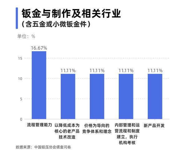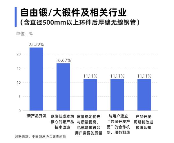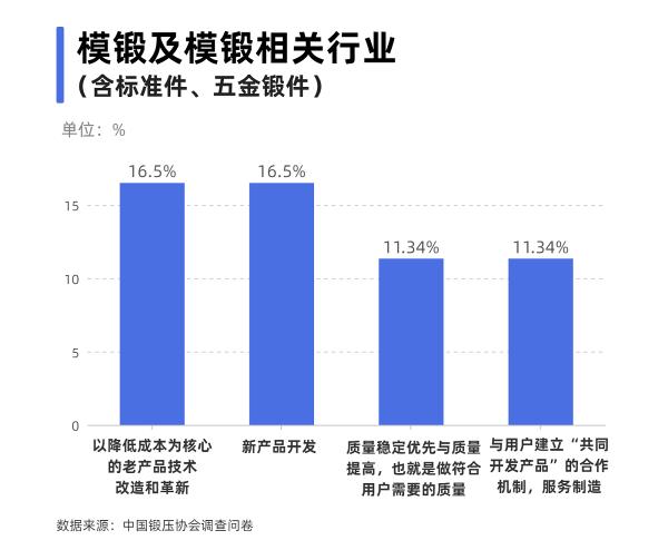 本调查主题设计主要是想反映两个方面的内容,一个方面是制度或运营技巧;另一个方面是文化建设,包括如何有效利用优秀的工业文化。实际调查结果则集中反映在三个方面:一是持续技术改进、节能降耗,绿色制造;二是高质量的制造能力,提高运营管理水平;三是加深与客户的紧密合作,主动服务,提高客户满意度。以上统计数字具体说明如下: 1.“以降低成本为核心的老产品技术改造和革新以及新产品开发”,受到所有细分行业的重视。重视的原因除了一般认同的原因外,主要反映了锻压行业产品的更新换代不是很快,也没有太多颠覆性的“换代”概念存在。也就是说企业在一个较长的时间范围内,生产的产品基本是没有太大变化的,唯一变化的是“销售价格的不断被挤压”。创新和发展的核心是老产品质量提升、生产工艺的不断优化和生产成本的不断下降。完全符合了锻压行业普遍认可的“最伟大的工程师是原有产品的创新,以及新产品的开发,归根结底是老产品的优化”。在这种理念或现实培养出的观念束缚下,企业开发能颠覆企业原有产品路线或方向的新品非常艰难,多数情况下,一些企业会轻易地对其说“不”。 对老产品的技术改造和革新必须大力提倡“1元钱”工程,为每个零件节约“1元钱”而奋斗。节约的方式主要应集中在降低材料消耗和能源消耗,实现较高的模具寿命和降低公共费用支出,同时从管理角度看,应减少中间制品留存,提升设备运行效率和单位时间内的人均劳动生产率。 当然在对老产品的技术改造和革新时必须考虑投资成本对最终产品的影响,必须谨慎地为老产品扩大产能。如果与用户关系密切,必须在技术改造中考虑“改进或改型产品”的适应性。 2. “质量稳定优先与质量提高,也就是做符合用户需要的质量”,除板材成形(冲压和钣金制作)行业没有高的选择之外,其他三个行业都比较重视。这说明,不同质量概念下的质量认知具有区别,在锻件制造和设备制造中,内在性能质量非常重要,因为经过锻造,可以优化微观组织结构,锻造的零件一般在机械中负载高,工作条件差。为此,“高可靠性和耐久性比仅仅是尺寸精度高更为重要”,因此锻件生产和设备制造行业必须要重视“合适稳定的高质量”概念的贯彻和追求,不能把无用的“高出去的质量”浪费在寿命周期内,也不要把自己“做死”。 由于行业的特殊性,各自关注的重点也有所不同,比如钣金制作行业比较关注,流程管理能力,以价格为导向的竞争体系和理念,以及内部管理和运营流程和制度建立。这反映了这是个多品种、小批量和多批次生产的行业,让所有设备不停歇地处于生产状态,让自己的产品尽可能地降低成本,成为了钣金制作行业面临的管理难点。在这个行业中,设备能力的匹配和内部物流以及仓储显得非常重要,也应成为这个行业取得竞争力的一些突破口。 3. “与用户建立“共同开发产品”的合作机制,服务制造”也是企业把握市场话语权,以客户为中心的发展战略。这是整个行业进步的一个重要标志。不再是“用户要什么我做什么”,也不是“什么用户需要,我就为什么用户服务”的时代了。提供零部件的企业开始越来越重视参与用户产品设计阶段的工作,依据本身的特点和长处,为用户提供双方满意的解决方案成为了一种追求。实现了“在满足你功能需要的条件下,我以最优的方式生产和供应”。 本次调研的主题下,还列入如下表的一些问题,大家选择的并不多。从这一点看,解决企业现实、当下问题才是正道,积极的应对市场变化,在挑战和机遇中,必须服从于“生存下来求发展”的规律,但也不能忽略了如下的一些关注点。