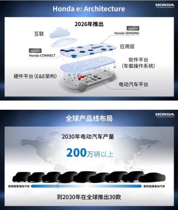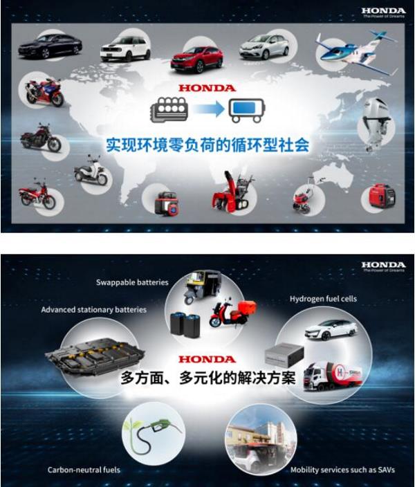 4月12日,Honda举办新闻发布会,取缔役兼代表执行役社长三部敏宏、取缔役兼代表执行役副社长竹内弘平、及执行役专务青山真二出席,并发布纯电动汽车事业领域的最新举措。 01电动化事业相关举措 Honda旨在向全球每一个有行动意愿的人提供强劲支撑的动力,拓展人们的可能性,以环境零负荷实现自由移动的喜悦。 夯实事业基础 多年来,Honda一直以“夯实事业基础”和“面向未来成长的准备”为方针开展事业,在产品、业务和新技术的各领域正在逐步取得成果。 ・汽车事业体制稳步改善,截至目前,全球车型的派生数量较2018年已削减至一半以下(目标是到2025年削减至三分之一)。 ・在汽车生产成本方面,以相比2018年减少10%为目标,通过“夯实事业基础”节约成本,并将其投入至“电动化”和“面向未来成长的准备”中,今后也将加速推进这一举措。 Honda独有的解决方案 为在2050年通过全领域产品和企业活动实现碳中和的目标,作为在摩托车、汽车、动力产品、船外机和飞机领域年产量总计达3000万辆规模的全球最大动力总成制造商,Honda正致力于推进各领域产品动力源的碳中和化。为实现这一目标,我们认为需要采取多方面、多元化的解决方案,而不是简单地将发动机替换为电池。 除汽车的电动化之外,我们还为不同国家和地区的客户按需提供各种解决方案,包括针对不同出行方式活用交换式电池和氢燃料电池。 此外,我们将通过连接它们的CONNECT平台,提高整个社会的便利性和运行效率。