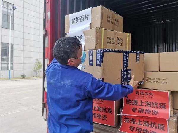 奔腾激光领导层通过积极与上海慈善总会沟通,以最快速度为上海抗疫贡献一份力量,同时针对上海地区广大用户,公司也拟定了一揽子帮扶政策,调集激光备件,为疫情后企业的复工复产提供有力支持。