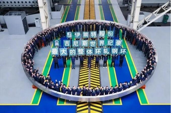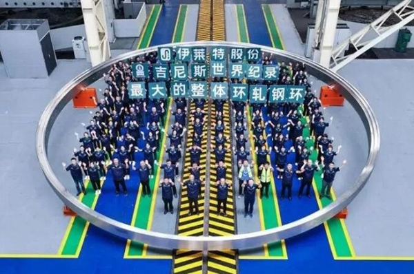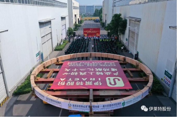 发运仪式上,吉尼斯世界纪录认证官杨绍鹏首先宣布了挑战结果:由伊莱特能源装备股份有限公司发起挑战的最大的整体环轧钢环最终的挑战结果是直径15.673米,挑战成功。
