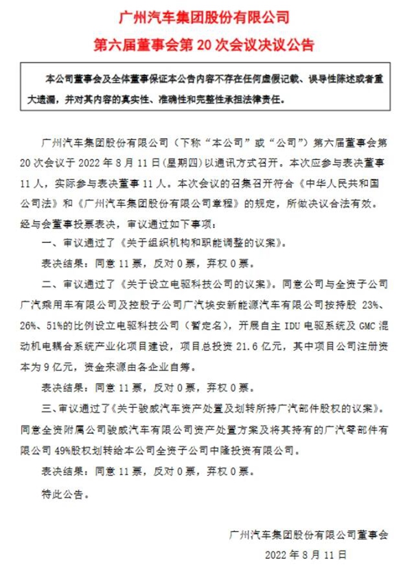 8月11日,广汽集团公告称,公司董事会审议通过了《关于设立电驱科技公司的议案》,同意设立电驱科技公司(暂定名),开展自主IDU电驱系统及GMC混动机电耦合系统产业化项目建设。 根据公告,该公司由广汽集团、广汽乘用车有限公司、广汽埃安新能源汽车有限公司分别按23%、26%、51%的比例持股设立,项目总投资21.6亿元。 ![]() 按照规划,电驱科技公司将在2025年建成生产线,每年能生产40万套IDU电驱系统总成,及10万套GMC混动机电耦合系统的电机和电控。 广汽集团表示,电驱科技公司的成立,将帮助广汽集团掌控电驱核心技术、实现部分电驱自产。今后在电驱领域,广汽集团将自研自产、合资合作生产、外购“三路并举”,以保障供应链的稳定,降低核心零部件的采购成本,助力集团新能源汽车业务做优做强,进一步提升盈利能力。 当前,纯电车及混动汽车市场发展迅速。电驱动系统作为新能源汽车的动力源,是不可或缺的核心零部件。作为新能源汽车的“心脏”,电驱动系统发挥了燃油汽车中“发动机+ECU电控单元+变速箱”的作用,直接影响新能源汽车整车使用的动力性、经济性、舒适性和安全性等核心表现。 而无论采用何种电动化技术路径或何种电池类型,新能源汽车都需要电驱动系统实现动力输出与控制。因此,实现IDU电驱系统总成及其核心部件、GMC混动机电耦合系统关键核心部件的自研自制,掌握核心技术、持续保持整车产品技术先进性,对企业的可持续发展影响深远。 另从技术发展趋势来看,电驱正从初步的结构集成向深度系统集成演变,系统集成化、部件工艺优化以及新材料的使用,正引领电驱朝着高功率、轻量化、小型化的方向发展。 ![]() 作为广汽集团新能源汽车品牌,埃安2018年推出全球首创深度集成三合一电驱,实现“电驱、电控、差减”三合一,重量降低20%、体积减小15%的同时,功率提升14%、扭矩提升20%。2020年埃安发布全球首创高性能两挡双电机“四合一”集成电驱技术,具备两秒级零百加速能力。近日,埃安自研新一代超高性能电驱试制件也已下线,进入最终量产验证阶段,将使汽车零百加速跨入两秒内。 埃安方面表示,未来将依托电驱科技公司,重点围绕IDU电驱系统进行自主研发及产业化,实现自主电驱研发、试制、试验和量产一体化。 今年1-7月,广汽埃安累计销量达125,284台,其中7月销量突破2.5万台,位于市场头部行列。电驱科技公司的成立,将为埃安的持续高速发展奠定更加坚实的基础。 来源:盖世汽车社区 |