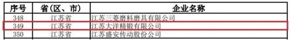日前,江苏省第四批专精特新“小巨人”企业和第一批专精特新“小巨人”复核通过企业名单公示期满,江苏大洋精锻有限公司成功入选。