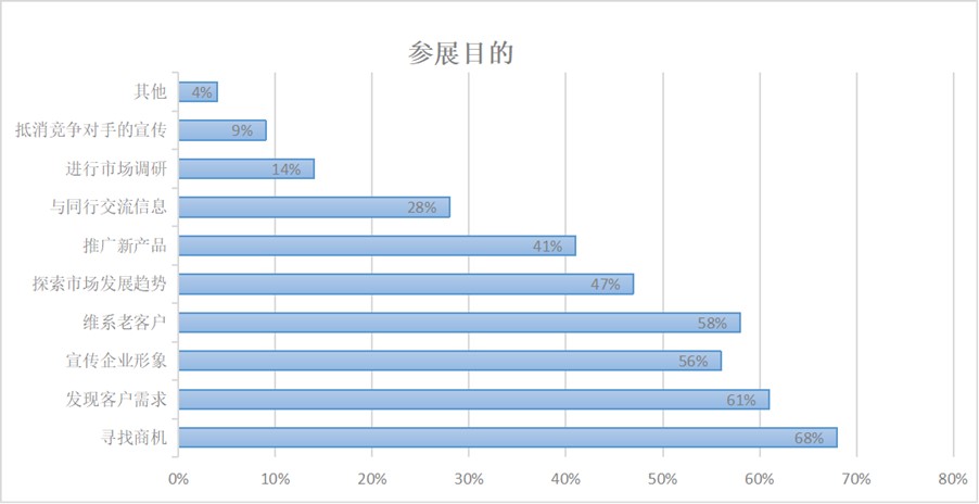 经由微信(朋友圈、公众号、微信群)、同行好友、打电话告知前来参观的观众人数最多;其次为传统纸媒、装备嘉族;抖音、短信、微博、电视、广播渠道也有效触及了行业人士。 三、展商数据分析: 本届展会吸引了来自美国、日本、英国、德国、韩国、瑞士等10余个国家以及中国香港、中国台湾地区和国内20多个省市机电行业制造商报名参展。马扎克、牧野、埃马克、哈挺、迪恩、津上、雷尼绍、友嘉、永进、油机、纽威、台群、迈萃斯、不二越、华中数控、乔扬、宝科、新诺、CY、扬森、创能、友龙、德扬、久勋、中扬、巨高、智目、金岭、华集、华特、台功、德杰、日野、恒望、古田、精机琥正、通大、中星、江南、普鲁特、东部、江苏金诺、宝宇、巨匠、西格马、仲全、GF、宝煜、华特、铁正、普拉迪、华恩、齐星精创、德力、弘迪、全永、合盈、瑞均、大铁、汉奇、宝玛格、睿泽、捷程、庆鸿、汉霸、汉奇、硕方、木村、惠东、博达、森特威、美创汇诚、国瑞恒顺、震声机电、世纪祥通、世纪天一、金仕达、利劲、鑫忠信、同心、赛帕埃惜、耐霸、一准、以赛亚、科威晶、奥胜达、科普鑫宇、匠心、世匠、西门子、伟斯、米宏、德柔、釜正、红旗、百灵、硕克、京腾、上大恒精、晟元兴、耐斯、耀欣、益新、力创、千岛、昶冉、普诺克、英络克、捷甬达、名井、荣谐、金美威、鑫凯锋、天合、旨恒、鲁重、天友、扬力、重装、晋诚、比优特、台稳、SLM、触点、斯柯特、三环、艾蓓斯、中力、诺高工业、卓蓝、科聪、云雀、摩卡、芯合、山大华天、伊玛、精坐标、唯景三维、雷普、威浦、速睦喜、事德纳、合发齿轮、联安机电、山口、德诺、瑞气、台菱、博锐恩、明海达、威德诺、恒优达、欧恩、安川、龙思达、鸿镭、力夫特、亚德客、博亿精科、伟尔仕、安美科技、福协德、飞达、新发现、瑞大、新思路、拉古那、新智特、明国、乾鼎、日畅、东亚等品牌强势集结,各项前沿技术在此汇聚,尽显工业智造高速发展之势。 1.参展目的