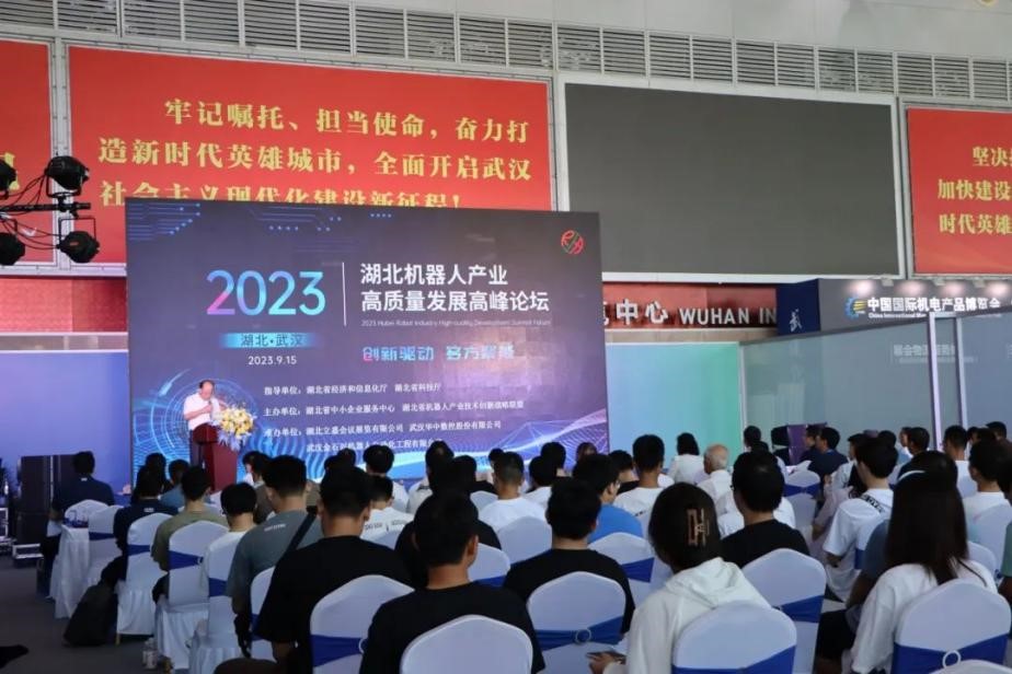 2023湖北机器人产业高质量发展高峰论坛 9月15日上午,在湖北省经信厅、科技厅的指导下,由湖北省中小企业服务中心、湖北省机器人产业技术创新战略联盟主办、湖北立嘉会展展览有限公司、武汉华中数控股份有限公司、武汉金石兴机器人自动化工程有限公司承办的“创新驱动 多方聚能--2023湖北机器人产业高质量发展高峰论坛”在武汉国际博览中心顺利举行。 此次会议认真贯彻党的二十大精神,深入落实《“十四五”机器人产业发展规划》、《“机器人+”应用行动实施方案的通知》,湖北省经信厅中心企业服务中心主任李承绘、专精特新服务部副部长陈艳华、湖北省经信厅装备处副处长张晓凤、湖北省标准化与质量研究院高新所所长谢秋琪、湖北省机器人产业技术创新战略联盟理事长徐击水、工信部电子第五研究所研究员谭德家等领导出席会议,会议集聚省内各地机器人产业代表、专家学者、业界精英100余人,遵循着立足发展、探究未来、合作共赢的宗旨,共同交流探讨当前机器人产业发展新趋势,共谋机器人跨界融合新发展。 会议以“创新驱动 多方聚能”为主题,从产业基础、政策措施、人才培养、尖端技术、创新发展多角度分析当前机器人产业发展的基础条件,全方位助推湖北机器人产业高质量发展。会议信息量大、典型案例分享说服力强,既体系了湖北省机器人产业的发展特色,又指明了今后做大做强的发展方向,论坛具有代表性、引领性、及时性,有利于快速提升湖北省机器人产业发展质量,推动优势资源要素的深度融合,构建创新驱动发展新格局、新业态、新模式。