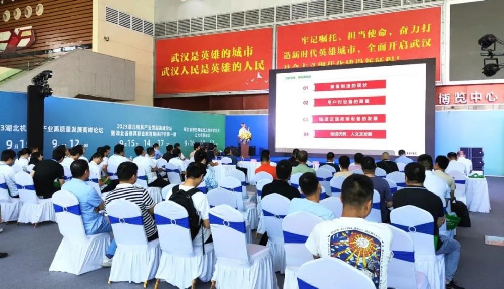 2023第二届湖北省智能制造产教研融合高端论坛 2023年9月14日,由湖北省高端装备制造产业创新联盟、湖北省机械工程学会主办,湖北工业大学和丁汉院士智能制造科普工作室承办的第二届湖北省智能制造产教研融合高端论坛在武汉国际博览中心B召开。该论坛是湖北省科协2023年重点学术活动之一,也是第23届中国国际机电产品博览会的主题论坛。湖北省机械工程学会副理事长兼秘书长朱永平、湖北省科协党组成员、副主席王新云、湖北工业大学党委常委、副校长陈自才、湖北工业大学底特律绿色工业学院院长何涛、武汉交通职业学院校长周慎教授,武汉理工大学机电工程学院院长吴超群教授,华中科技大学机械科学与工程学院副院长陶波教授,武汉华中数控股份有限公司总裁田茂胜高工,浙江大学、浙江万维镜像科技有限公司副总潘常春高工等嘉宾出席并做了精彩的演讲。论坛以“凝聚创新 融合发展”为主题,邀请了200余名来自全省各地高校院所和制造业企业的专家、学者、研究生参会交流。