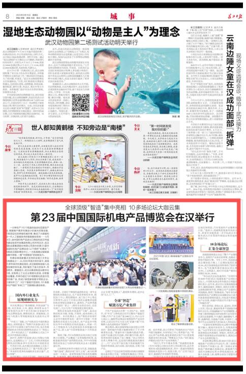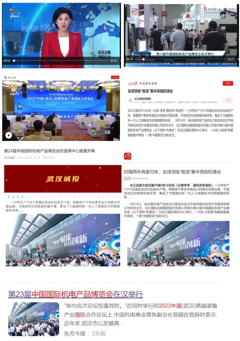 展会前中后期,获武汉电视台一台新闻综合频道、长江日报、人民日报、掌上武汉、大武汉客户端、腾讯新闻、东方今报等主流媒体采访报道,以及城投集团微信公众号、行业专业媒体机械工程师杂志社、磨削世界杂志社、现代机床杂志社、QC检测仪器网、刀具界杂志社、行讯金属加工网、机床工具制造业杂志社、机床市场采购网、机床制造产业杂志社、机器人技术与应用杂志社、模具制造杂志社、天下机械网等100多家行业合作媒体集中发声。