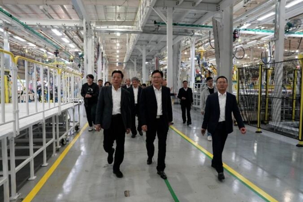 与会人员在云度汽车造型中心参观了全新智能车型,听取云度全新平台、全新产品介绍,随后走进云度汽车冲压车间和焊装车间,参观新产品的全新智能产线。