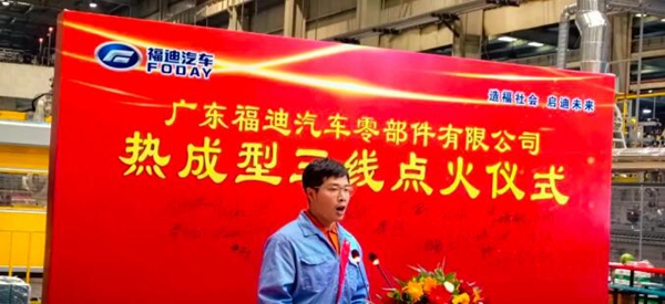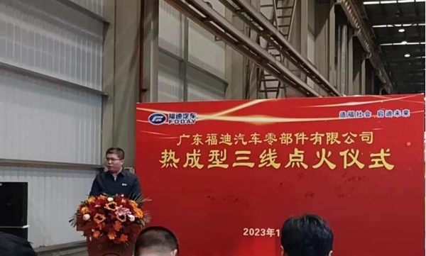 2023年11月20日下午3点18分,广东福迪汽车零部件有限公司举行热成型三线点火仪式。新的起点、新的征程,这是福迪热成型业务充满里程碑意义的一刻。