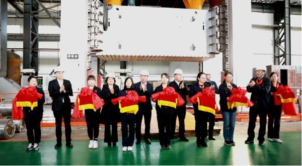 10月17日上午,营口锻压机床有限责任公司为“一汽大众一级供应商”研制的1600吨级进模多工位压力机自动生产线成功下线。该产品是企业成立以来生产的最大吨位机械压力机,整机水平达到了国内先进水平,是汽车更新换代所必需的重大技术装备。 副市长赵新明,自贸区党工委副书记、管委会主任王丽出席剪彩仪式。