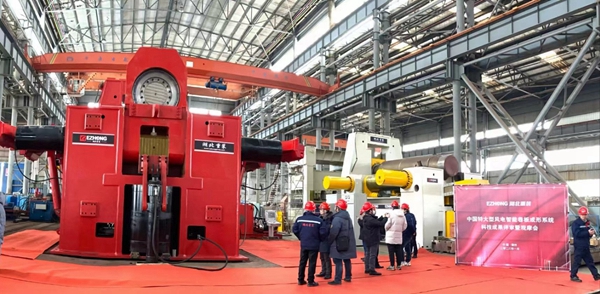 2022年8月湖北重装公司代表中国品牌在国际市场与瑞士Haeusler、意大利DAVI等多家全球知名卷板机制造公司竞争,最终成功中标阿联酋200X4500全液压三辊卷板系统。该系统最大卷制钢板厚度200mm,宽度4500mm,最大压下力4500吨。该机配备三辊全驱传动系统、中心距可调节系统、全自动板材对中装置、35米全自动输送辊道、顶侧支撑自动纠偏系统、最大卷圆直径达到12米、配备EPS系统精度达到千分之一,是目前全球海洋风电塔筒卷制领域科技含量、自动化程度最高的先进机型。在全球市场属于特大型卷板机,该产品是湖北重装公司持续创新过程中的一个阶段性成果,助推我国海上风电事业发展,国产品牌走向全球。 该次评审会专家组由长江大学易先中教授、华中科技大学金俊松教授、武汉理工大学柳星教授、中船武汉重工(471)刘国平主任、武汉华电工程装备有限公司罗成主任五名专家组成,经过专家组细致严谨的评审,最终评审结果为:湖北重装公司设计制造的特大型风电智能卷板成形系统目前达到整体国际先进,部分国际领先。