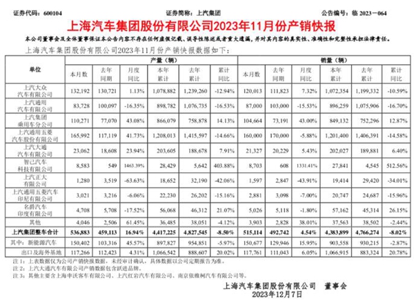 进入2023年后,受车市价格战等因素打击,上汽集团销量未见起色。最新数据显示,今年1-11月,上汽集团累计销量为438.39万辆,同比下滑8.02%。按照规划,2023年上汽集团的年销目前为600万辆,这也意味着上汽集团或无法实现年销目标。行业认为,上汽集团销量不振与合资品牌式微关系密切,其中上汽大众同比下滑10.59%,上汽通用五菱同比下滑14.58%。 在新能源方面,上汽集团旗下共有智己和飞凡两大新能源品牌,而作为智己和飞凡汽车的负责人,蒋峻和吴冰自然承载了上汽集团自主品牌电动化转型的重任,不过从数据来看,这两大品牌尚未在中高端新能源市场站稳脚跟。数据显示,今年1-11月,上汽集团新能源汽车累计销量为90.36万辆,同比下滑2.87%。其中智己汽车累计销量为2.78万辆,虽然同比大幅增长512.56%,但与目前主流新能源品牌相比仍有较大的差距。