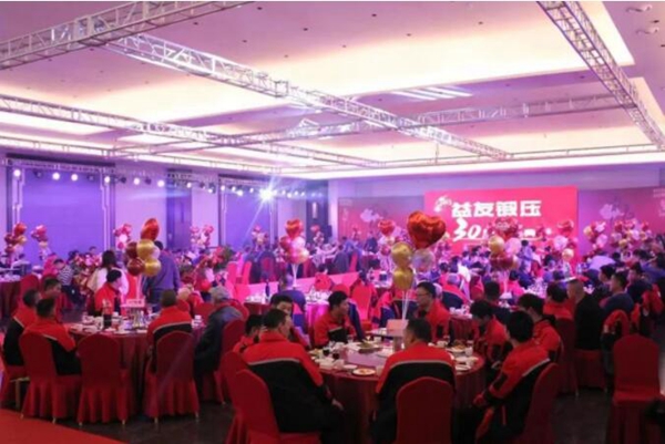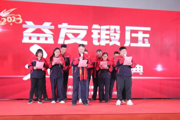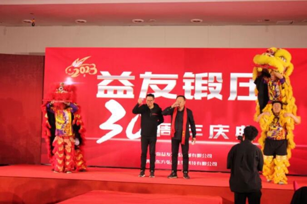 最后益友锻压创始人贾元友慷慨激昂地为大家送上祝福,对一直支持益友的客户、供应商、朋友、员工们表示衷心的感谢,感谢一直不离不弃,有竞争有进步,还特别致谢了宋大臣总经理,是他一心研究技术,使益友锻压得以重登巅峰,再次为锻压装备行业贡献力量,为客户提供最好的服务!