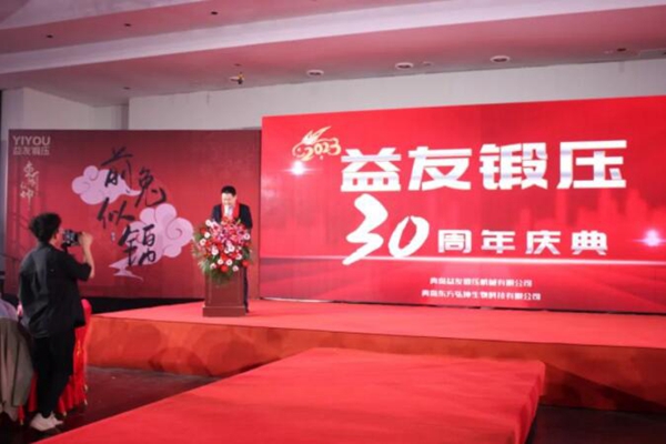 2023年3月10日,青岛浩源益友锻压机械有限公司成立30周年庆典在胶州融合大酒店隆重举行,以“从未放弃 坚持就是伟大 重登巅峰”为主题贯穿整个庆典。