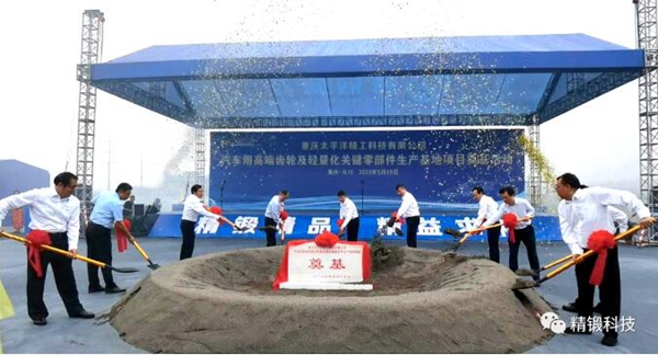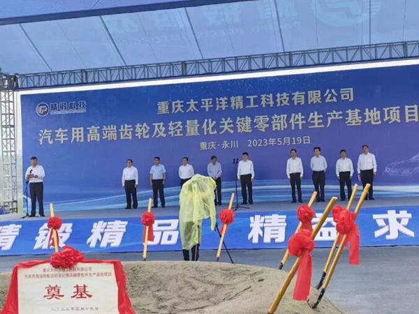 2023年5月19日,江苏太平洋精锻科技股份有限公司全资子公司重庆太平洋精工科技有限公司“汽车用高端齿轮及轻量化关键零部件生产基地项目”在重庆永川高新区正式开工建设。永川区委书记张智奎先生、中国锻压协会理事长、精锻科技董事长、总经理夏汉关先生、中国锻压协会执行副理事长兼秘书长张金先生等领导出席开工仪式。本次活动由永川区人大常委会副主任罗朝友先生主持。