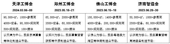 【展会介绍】 振威工业展会系列,覆盖华北、华南、华东、中原市场,是服务于我国工业制造领域全产业链的一站式会展平台,是全球会展综合服务商——振威会展集团倾力打造的明星系列展会项目。 历经二十载,经受时间的洗礼与产业变革的考验,见证中国百年工业震撼的历史变迁,由国家商务部批准的天津工博会迈入新历程,第20届天津工博会-机床展将于2024年3月6-9日在国家会展中心(天津)举办。天津工博会-机床展是国际展览业协会(UFI)认证的国际品牌展会,立足中国先进制造研发基地——天津,展出面积近100,000平方米,服务我国工业装备产业发展,历经20载口碑积累,汇集全球范围内机床领域的数字化、智能化、信息化创新成果,吸引了蒂德精机、丽驰、程泰、绮发、津上、山崎马扎克、国盛、亿晋、东刚、宝锋、大金等知名品牌参展,展商回头率高达72%,获得了政府机构、行业商协会、参展企业及买家用户等合作伙伴的一致好评,充分展示了展会对产业发展、工业升级的正向推动作用。 天津工博会-机床展,采取“24小时360度宣传计划”,利用50余万条买家数据库,为参展企业的“一对一”买家邀约服务提供数据支持。线下宣传,深入80余个城市产业市场及全国产业腹地,实现中国高端工业制造市场全覆盖,保障参展商现场交易、获客的效果;线上宣传,覆盖腾讯、百度、头条、抖音等新媒体全平台宣传资源,同步启动线上采购供需平台,360度全维度广告覆盖,确保采购买家的精准邀约,助力展商达成交易。 天津工博会-机床展,立足推进中国制造业腾飞,获得人民网、新华社、中央电视台等100余主流媒体的追踪报道,已成为行业内市场拓展、贸易往来、信息交流、品牌打造的高端会展合作平台。 【三大升级】 站在新的起点上,2024天津工博会-机床展勇担时代重任,整合海内外资源,迎接新的挑战,向行业人士呈现三大升级: 规模升级:2024天津工博会贴近产业发展需求,解决产生升级过程中对高精端机械设备庞大的采购问题,展现行业前沿信息和技术,凸显采购对接与供需合作作用,受到行业企业关注,2024年天津工博会6大展馆,展示面积突破10万平方米。 展区升级:服务工业制造全产业链,在原有机床、机器人、工业自动化展区的基础上,2024年增设工业互联网、空压机、传感器、激光及焊接、新能源装备、汽车装备、智慧物流等展区,形成十大展示主题,为高端制造业市场提供闭环服务。 买家升级:覆盖我国北方制造市场,为参展企业提供“一对一”买家邀约,举办采购对接会,助力参展交易,2024年天津工博会矢志追求买家升级,邀约代表企业发布年度采购标准,提供精准对接,汇聚16大买家集群,确保买家达10万人次。 【震撼数据】