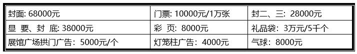 参展费用: 国内参展商:标准展位13800元/全展期/个9㎡,27600元/全展期/个18㎡ (双开口另加1000元) 空 场 地:1380元/㎡, 36㎡展位起租(按每平方米28元交纳展场施工管理费) 国外参展商:4500美元/全展期/个9㎡ 空 场 地:4500美元/㎡(按每平方米28元交纳展场施工管理费) 9㎡展位配置:围板、中英文楣板、洽谈桌一张、椅子两把、垃圾桶1个、日光灯二支。 一个3A电源插座。 产品发布会、技术研讨会/每节5000元。 本届大会会刊,用32开(210mm×140mm)进口铜版纸,精装印刷,在大会期间派发给参观人士。 欢迎企业刊登广告版面及其它宣传方式,收费标准如下:()