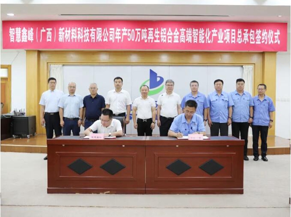 8月16日,智慧鑫峰(广西)新材料科技有限公司年产50万吨再生铝合金高端智能化产业项目总承包签约仪式在中国一重举行。集团公司党委常委、副总经理陆文俊,梧州市鑫峰特钢有限公司、智慧鑫峰(广西)新材料科技有限公司董事长董龙峰在签约仪式上致辞。梧州市长洲区委副书记、区长杨正沛出席签约仪式。
