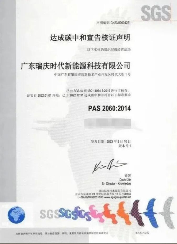宁德时代近日官宣,旗下全资子公司——广东瑞庆时代新能源科技有限公司正式获得全球知名认证机构SGS颁发的PAS2060碳中和认证证书,正式跻身零碳工厂行列。 这是宁德时代首个储能电池为主的零碳工厂,也是继四川时代宜宾工厂之后的第二个全资电池零碳工厂。据悉,除上述两家外,宁德时代与吉利汽车合资成立的“时代吉利”也属于“零碳工厂”。