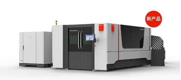 新品揭幕现场合影(从左到右:百超集团中国区总裁游松博士、瑞士驻华使馆经济金融与商务处主任Martin Matter先生、百超集团全球总裁兼执行官Alex Waser先生、瑞士驻华大使Juerg Burri先生、百超集团全球首席运营官Marco Vinanti先生) 第一款新品是百超的12kW功率激光切割机BySmart Fiber SE,这款产品兼具精度和速度,能够以更低的生产成本提供更高质量的切割效果。