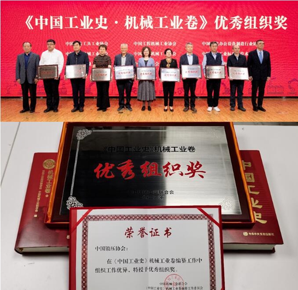 中国机械联原会长、机械卷编委会主任王瑞祥对机械卷的编纂工作做了简要总结。从第一阶段的承接任务、制定方案、编写大纲、充实队伍;第二阶段精心组织、确保进度、攻坚克难、力保质量;到第三阶段精心打磨、完成终稿、交付出版,再现了机械卷编纂工作的全过程。在谈到工作体会时指出,在机械卷编纂过程中,一是坚持高度的政治自觉是首要前提;二是建立专业化的编辑队伍是组织基础;三是传承行业优良作风是动力之源,四是树立高标准是打造精品的重要保障;五是联合作战是确保成功的必备条件。表示七年多的坚守,机械卷编纂团队向大家展示了一个讲政治、顾大局、团结协作、科学严谨、敬业奉献的优秀集体。同时,要求努力做好学史和宣传工作:一是要广泛宣传重要意义。工业史是列入向建党百年献礼的国家工程,机械卷是第一部全面反映我国机械工业发展的权威史书,是凝聚了工业领域和几代机械人劳动与智慧的财富宝库,具有重要的历史价值,值得很好珍惜收藏、学习借鉴。二是要认真组织学习研读。要结合当前“四史”学习教育和全面学习习近平新时代中国特色社会主义思想主题教育活动,组织开展“机械人学机械史、机械人爱机械”学史增信活动。结合实际有针对性地开展学习和研究。三是要努力推动身体力行。引导行业通过学史,把握行业发展规律和大势,借鉴历史经验和教训,坚持习近平新时代中国特色社会主义思想,牢固树立科学发展观,贯彻新发展理念,掌握事业发展的历史主动。引导职工传承发扬机械行业的优良传统作风,以深厚的报国情怀,爱岗敬业的奉献精神,在平凡的岗位上履职奉献,为建设机械强国建功立业。 会议对在编纂工作中组织工作优异和做出突出贡献的单位进行了表彰。赵驰同志宣读了表彰决定,与会领导向中国农业机械工业协会等25家单位颁发了优秀组织奖,向中国机械工程学会等6家单位颁发了突出贡献奖。最后,举行了新书首发仪式。中国工经联会长李毅中和机械卷编委会主任王瑞祥为新书揭幕。红色幕布的揭开将新书首发仪式推向高潮,《中国工业史•机械工业卷》正式与读者见面。 |