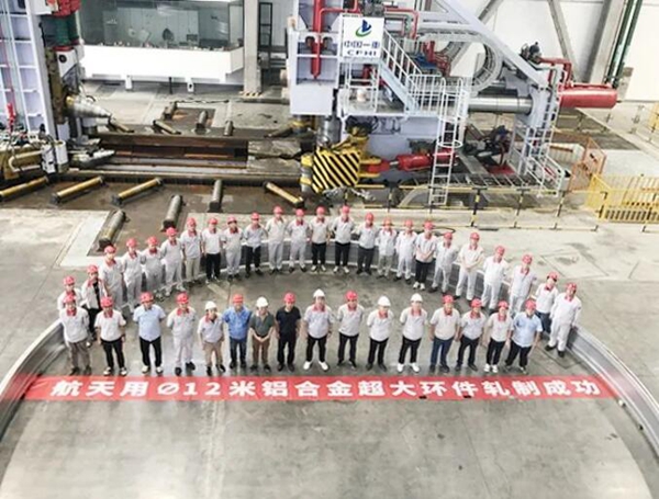 8月21日,中国一重承制的12米轻合金环轧机在湖南中创空天新材料股份有限公司一次性轧制成功,轧制出的12米轻合金超大环件达到预期精度要求,打破了轻合金最大直径10米的世界纪录,为我国新型大运载及深空探测工程打下了坚实的基础。