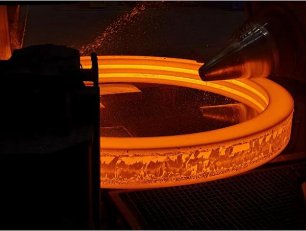 无缝环锻件轧制过程 风电作为一种绿色、清洁的能源形式,是实现脱碳的关键一环。有着160多年历史的蒂森克虏伯罗特艾德是全球风电轴承、环锻件市场的领导者,拥有全球最大的风电轴承研发中心,以支持打造更大、更可靠、更智能的风机。公司专注于制造回转轴承(滚动轴承)和无缝环锻件,根据客户的具体需求为他们提供定制化解决方案,这些产品被广泛应用于世界各地的工业领域。 来源:冶金信息网 |