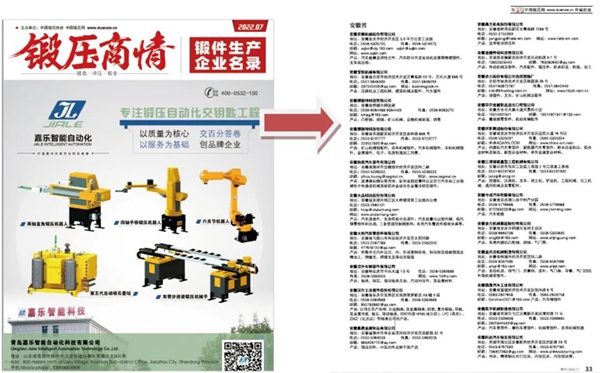 由中国锻压协会主办的 《锻压商情—锻件生产企业名录》2024年开始修订,最新修订版计划于2024年5月出刊,该刊采取线上锻造网上展会展示和线下锻造相关采购会议、展览等发放推荐方式相结合,真正搭建起锻件供采双方的桥梁。
