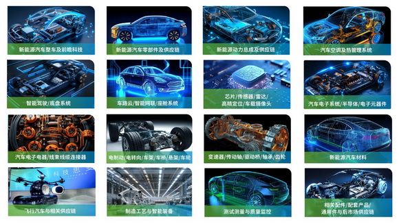 本届展会整合行业资源,以强大阵容展示前沿技术成果、首发新品、新材料及最新解决方案,展品涵盖新能源汽车大三电系统(电池、电机、电控)、小三电系统(车载充电机OBC、车载 DC/DC 变换器、高压直流配电盒PDU)、充换电设施、热管理系统、连接器与线缆线束、高低压电器、汽车电子电路、汽车电子系统、内外饰系统、智能网联、智能座舱、飞行汽车、自动驾驶、车身系统、底盘系统、汽车新材料及应用材料、轻量化材料及零部件、加工设备与智能装备、智慧工厂、相关部件、标准件及配件等领域的创新产品和技术成果,链接上中下游优质产业链,发挥联展品牌和底蕴优势。