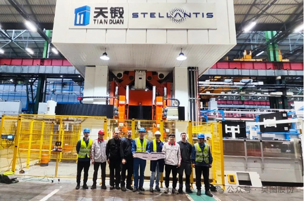 11月28日,奥图股份与天津天锻压力机有限公司(简称“天锻”)强强联合,为国际知名汽车制造商Stellantis西班牙VIGO工厂精心打造的第五条热成形冲压自动化线,已圆满完成安装调试,并成功实现首件试制。 合作之力,铸就精品 天津天锻压力机有限公司在压力机技术及装备领域深耕多年,以其卓越的产品质量和创新能力享誉业界;奥图股份是汽车冲压自动化领域的领航者。此次合作,不仅是两家企业技术实力的深度融合,更是对国外市场需求的精准把握与快速响应。在Stellantis的项目中,奥图股份与天锻紧密协作,从方案设计、设备制造到安装调试,每一步都凝聚着双方团队的智慧与汗水。通过精准对接客户需求,更快速地实现了产线的交付和稳定运行,为Stellantis的轻量化战略提供了强有力的支持。