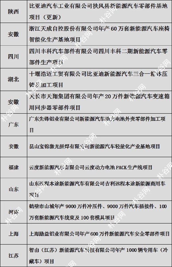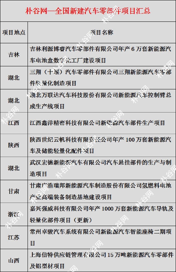 日前,朴谷网发布全国新建汽车零部件项目汇总,详细列表如下: