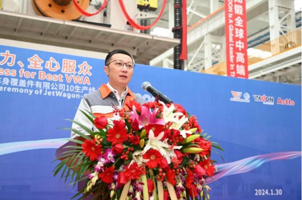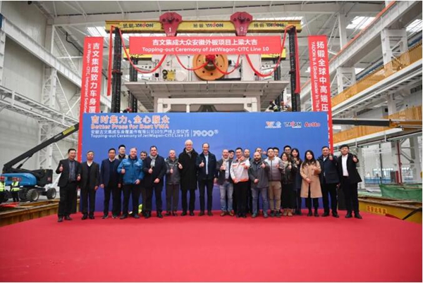 2024年1月30日,安徽吉文集成车身覆盖件有限公司的冲压车间济济一堂,在吉文、大众、扬锻等嘉宾共同见证下,7900吨大型覆盖件冲压生产线的上梁典礼成功举办。 ![]() 公司总经理董宏斌先生,首先对参与项目建设的各方代表感谢,他说在建的7900吨的大型汽车外覆盖件全自动柔性冲压生产线将是国内一流的大型智能冲压生产线,具备断续和连续同步生产模式,实现了全自动换模,生产效率达行业领先水平。