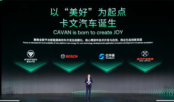 商用车市场迎来新玩家。 日前,新能源商用车品牌卡文汽车正式发布,该品牌由福田汽车、亿华通,以及博世旗下的博世创投与博原资本共同成立。据卡文汽车总经理秦志东介绍,卡文汽车将布局纯电动、氢燃料电池等技术路线,未来三年内,将在海内外市场陆续推出VAN(厢式货车)、轻卡、重卡等系列车型。