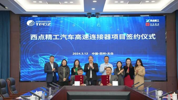 日前,西点精工汽车高速连接器项目签约仪式在太仓港区举行。市委常委、太仓港经济技术开发区党工委副书记、管委会副主任戚振宇,深圳市西点精工技术有限公司董事长邓清华等共同见证签约。