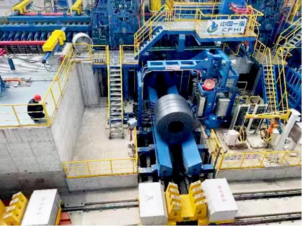 2250mm热连轧生产线是山钢永锋临港有限公司先进优特钢产业基地二期项目,也是中国一重与山钢永锋临港有限公司的首次战略合作,更是中国一重近年来承制的工艺及设备配置最齐全、装机水平最高的高端宽幅带钢热连轧生产线。该项目基于板带热轧生产线全流程智能化工艺设计软件系统,对工艺布置及设备配置进行了全流程优化。生产线采用了最先进的大减宽量定宽压力机技术、节能化分段式粗轧除鳞技术、新一代双工位无芯移送式热卷箱技术、优化剪切曲柄式飞剪技术、三排集管式超高压精除鳞技术、新型精轧机工作辊强力弯辊及横移装置技术、新型牌坊式强力夹送辊技术、可移出式强力卷取机技术等多项自主创新技术,并融合世界先进的自动化与智能化技术,着力打造一条具有典型性和标杆意义的高端热轧生产线,引领国内智慧热轧。