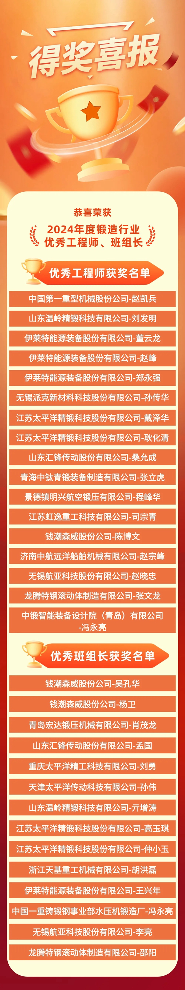 2024锻造行业优秀工程师、班组长获奖名单公布
