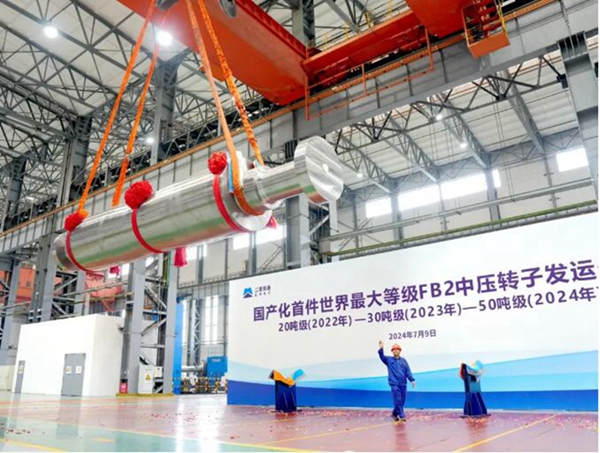此次交付的FB2中压转子为当今商运最高温度等级1000兆瓦超超临界机组的关键核心部件,重达50余吨,直径超1200毫米,是目前世界上重量最重、直径最大的马氏体耐热钢转子锻件之一,将用于1000兆瓦620℃超超临界二次再热机组,进一步加速推进了FB2转子国产化工程应用,具有重大现实意义和深远影响。