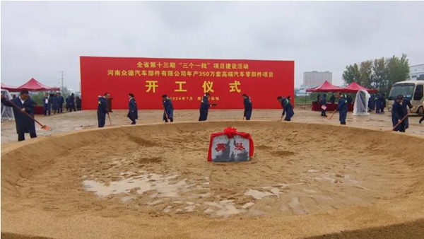 7月11日,河南省全省第十三期“三个一批”项目建设活动—河南众德汽车部件有限公司年产350万套高端汽车零部件项目开工仪式在卧龙区举行。市委副书记、市长王智慧宣布项目开工。